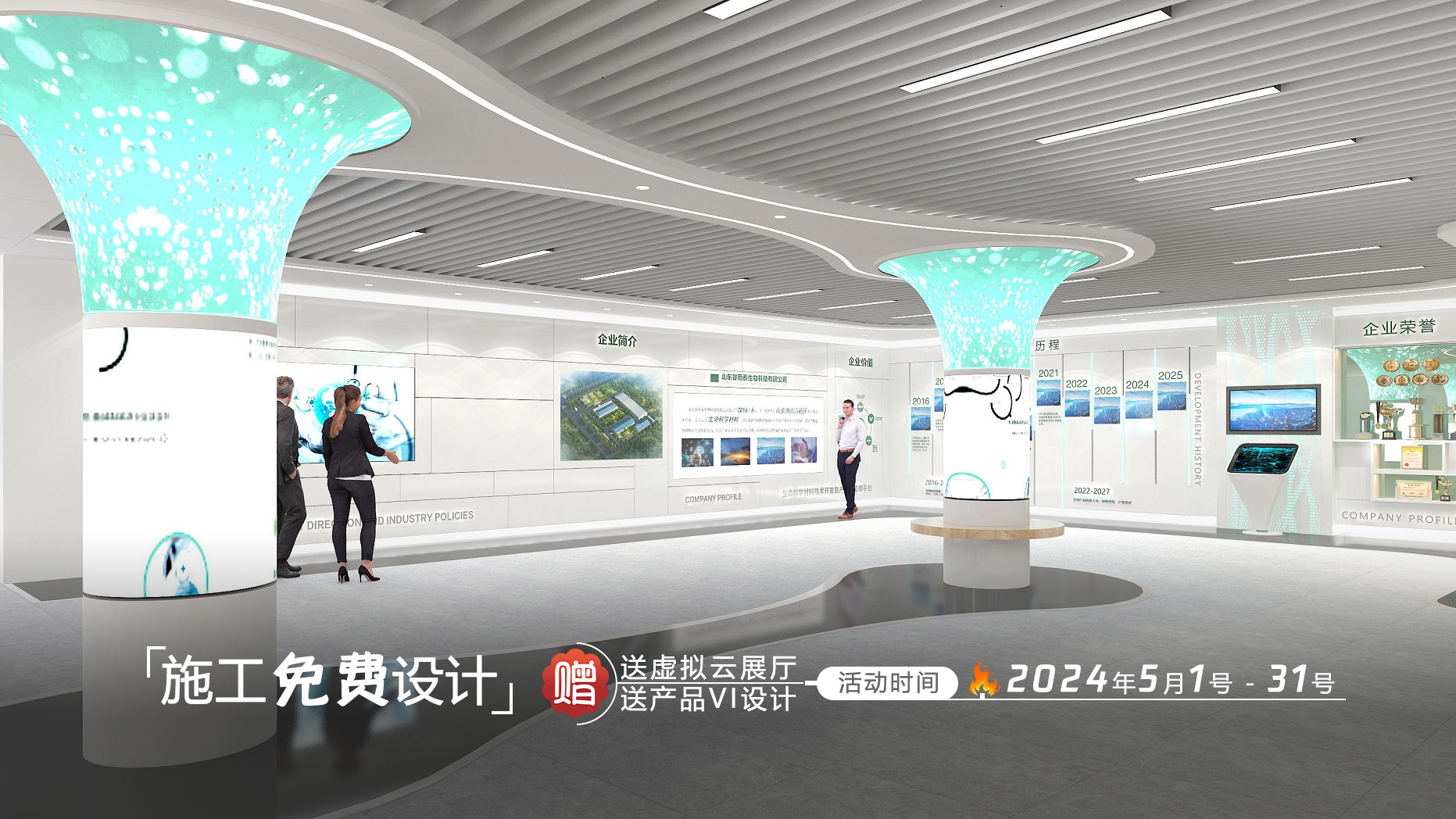九洲盛世有豐富的企業展廳、商業展館、博物館、文史館、科技館、政府展廳、云展廳、校史館、VR展示設計施工經驗。歷經20余年的發展歷程,根據行業和面積定制方案,服務客戶7000余家。